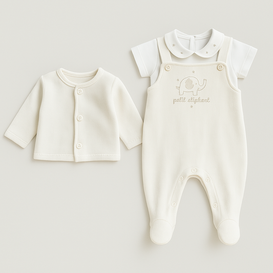 Conjunto Bebê 3 Peças Tricot Bordado Elephant Off White