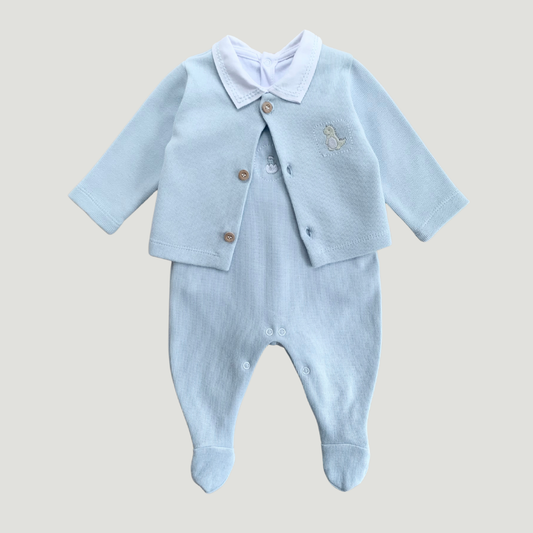 Conjunto Bebê 3 Peças Tricot Bordado Dino Azul